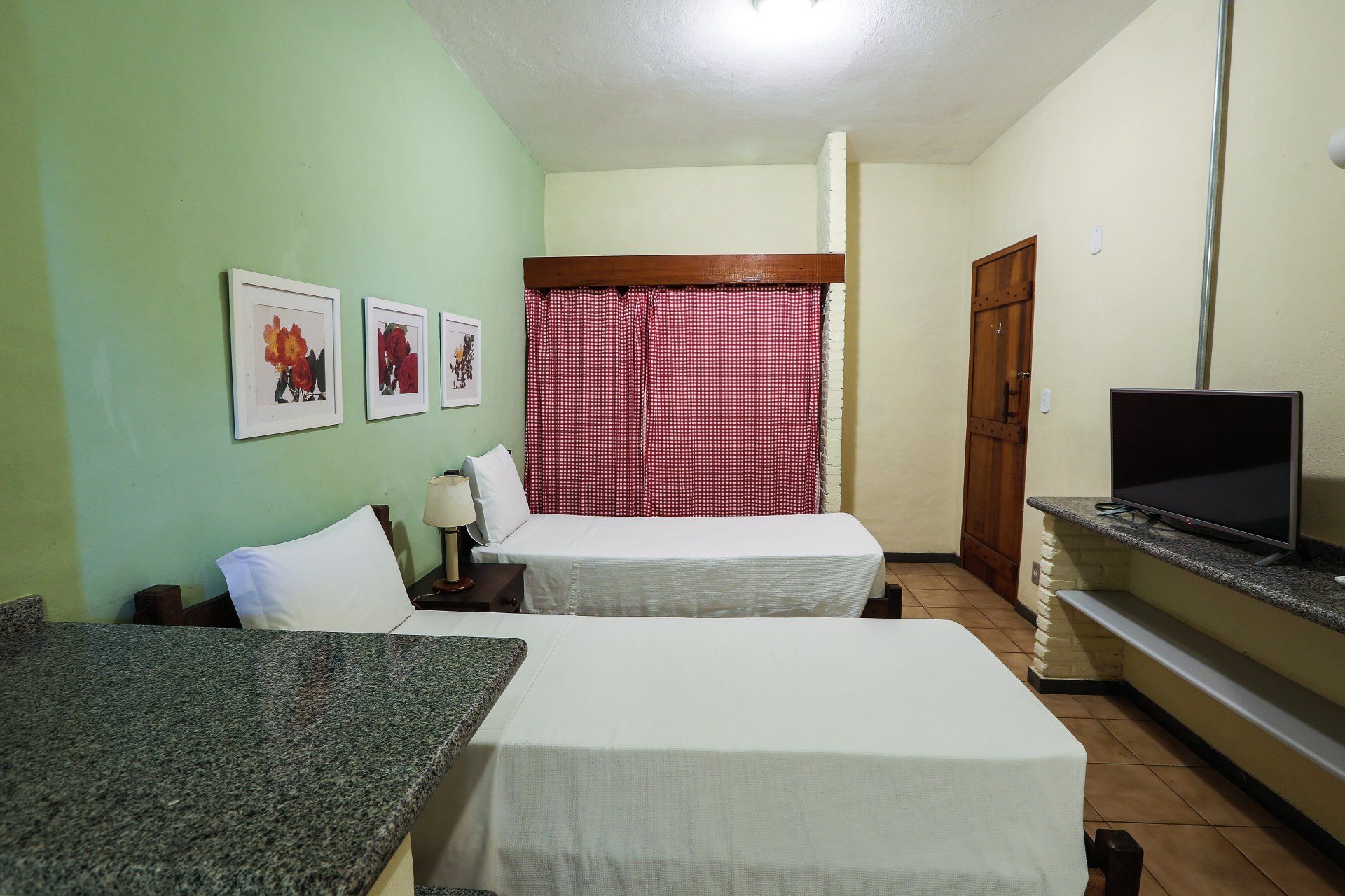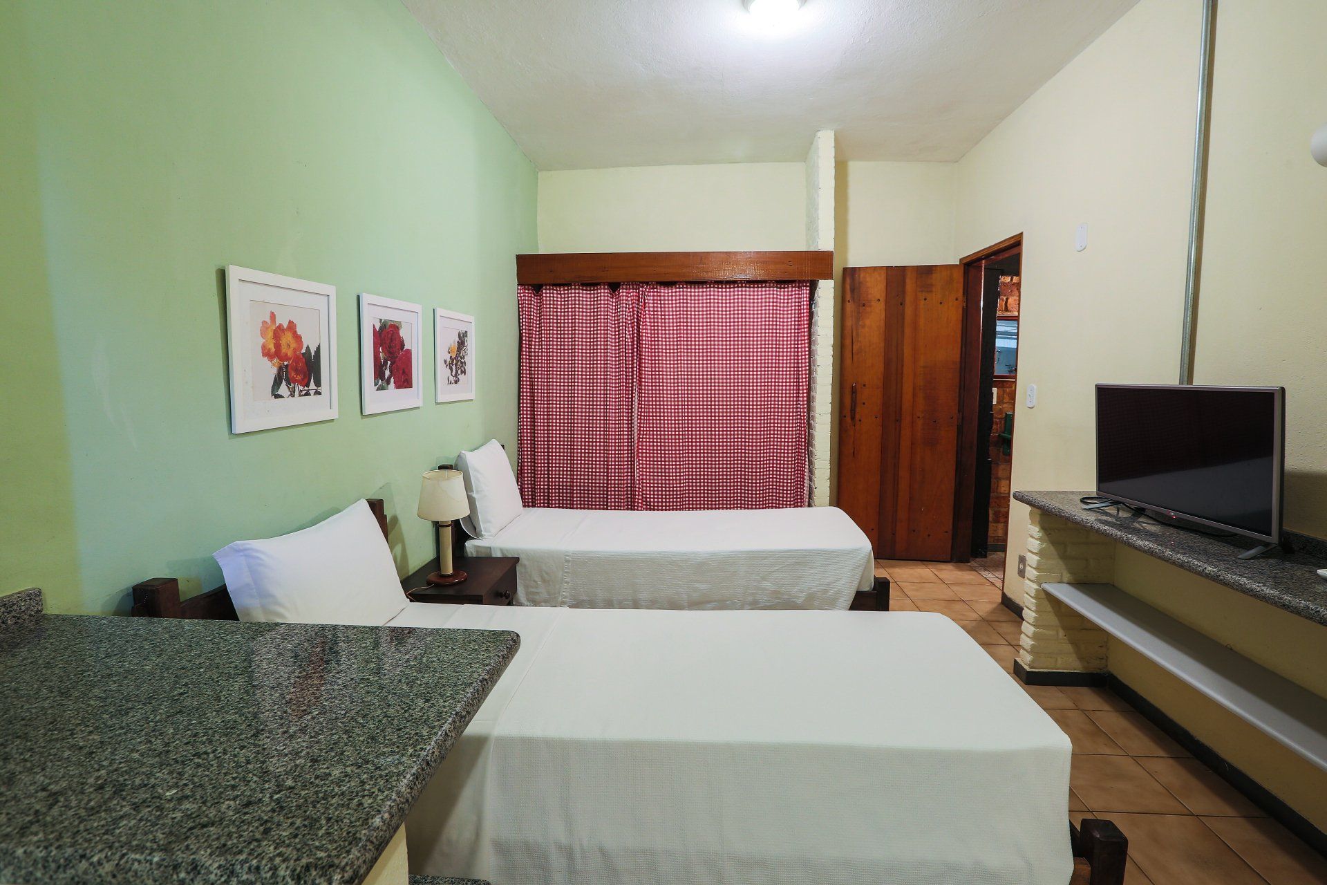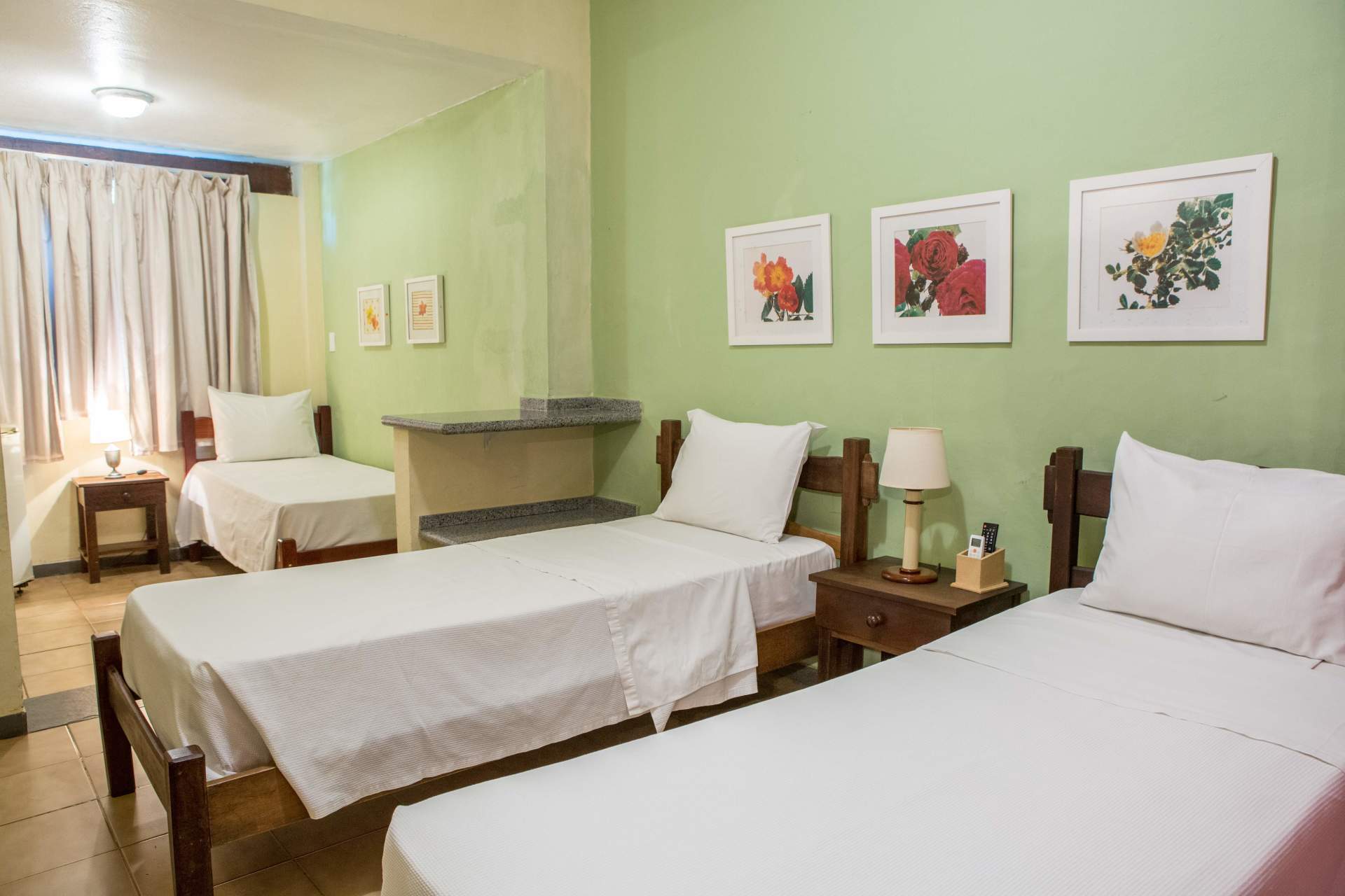 Quarto 1: cama casal Queen. Quarto 2: duas ou três camas de solteiro, TV de 32 polegadas